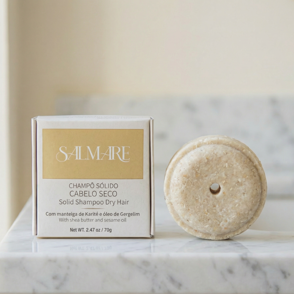Diga adeus ao cabelo seco e sem vida. O Champô Sólido Cabelo Seco Salmare, enriquecido com Manteiga de Karité e Óleo de Gergelim, hidrata intensamente e devolve a suavidade. Produzido em Portugal.