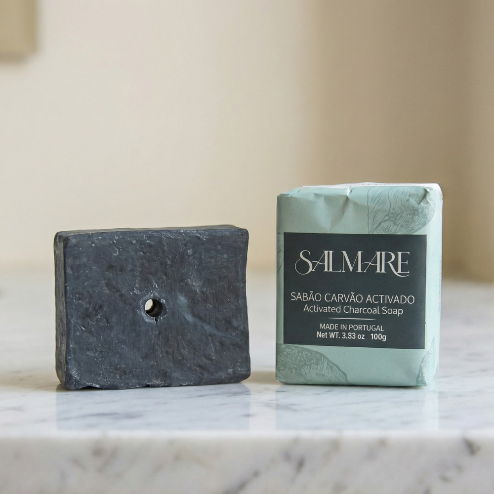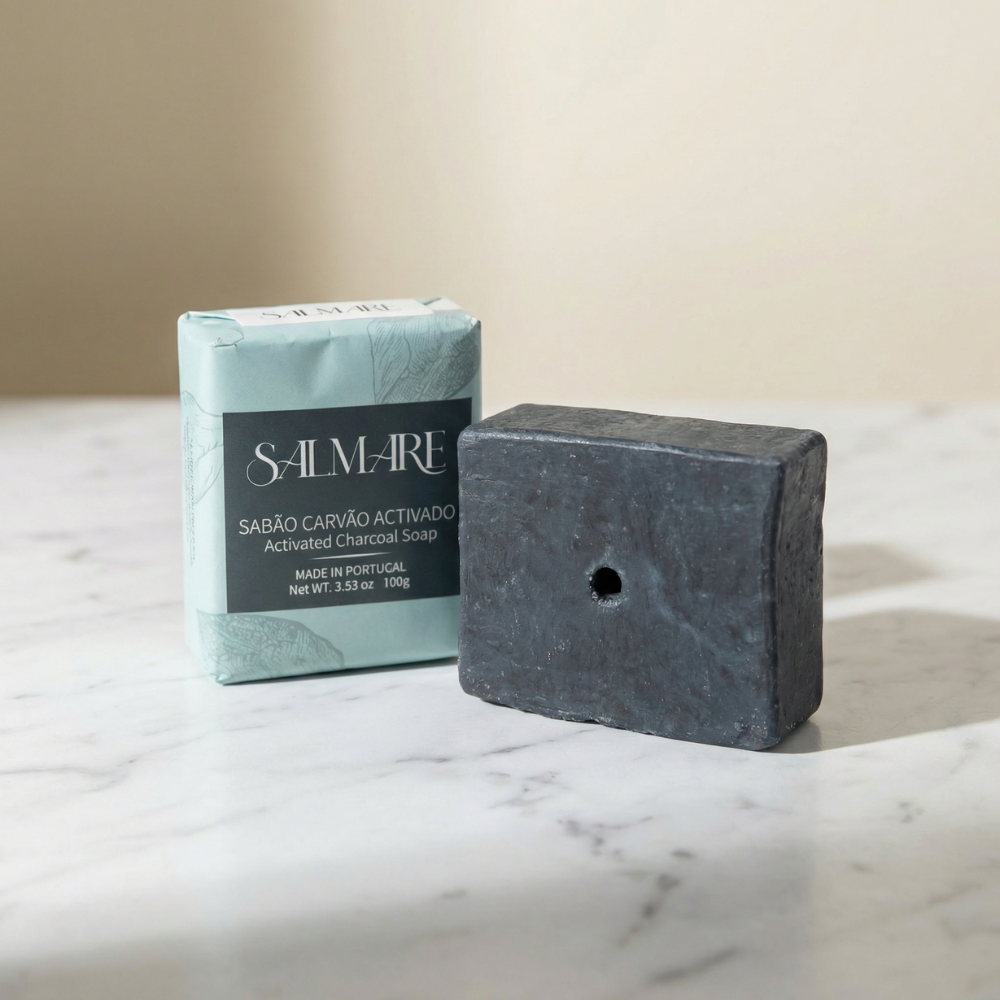 A tua pele acumula diariamente resíduos de poluição, oleosidade e células mortas que a impedem de respirar. O nosso Sabão de Carvão foi criado exatamente para resolver isso. A sua cor negra intensa é o reflexo do Carvão Ativado, um ingrediente natural famoso pela sua capacidade magnética de atrair e reter impurezas, desobstruindo os poros de forma incrivelmente eficaz.